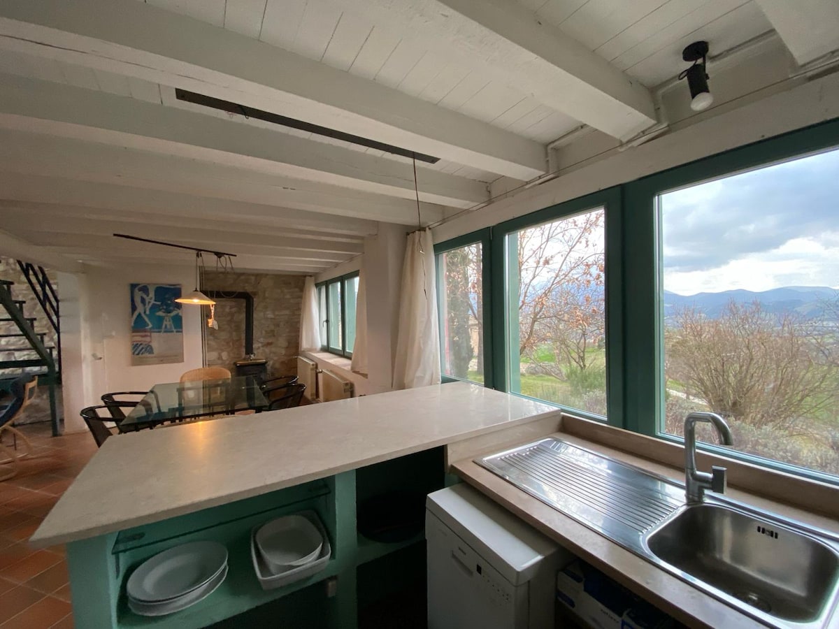 Saoire theolaí do theaghlach (nó do ghrúpa) chuig tuath barántúil na hIodáile: 3 sheomra leapa, 2 sheomra folctha, cistin lánfheistithe agus áit mhór mhaireachtála/itheacháin ina bhfuil gach rud a theastaíonn uait chun cócaireacht a dhéanamh. Tá an t - ardán clúdaithe iontach ar maos sna radhairc iontacha ar chnoic rollta agus ar chaisleán meánaoiseach Frontone i gcéin. Cibé acu an bhfuil tú ag baint sult as do chaife ar maidin nó ag baint sult as gloine fíona ag luí na gréine, soláthraíonn an t - ardán agus an gairdín an suíomh is fearr. I míonna níos fuaire téitear an teach le sorn millíní.