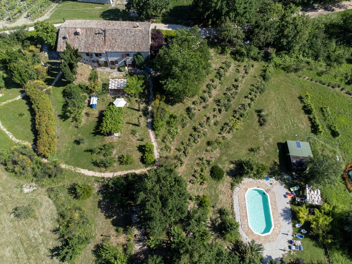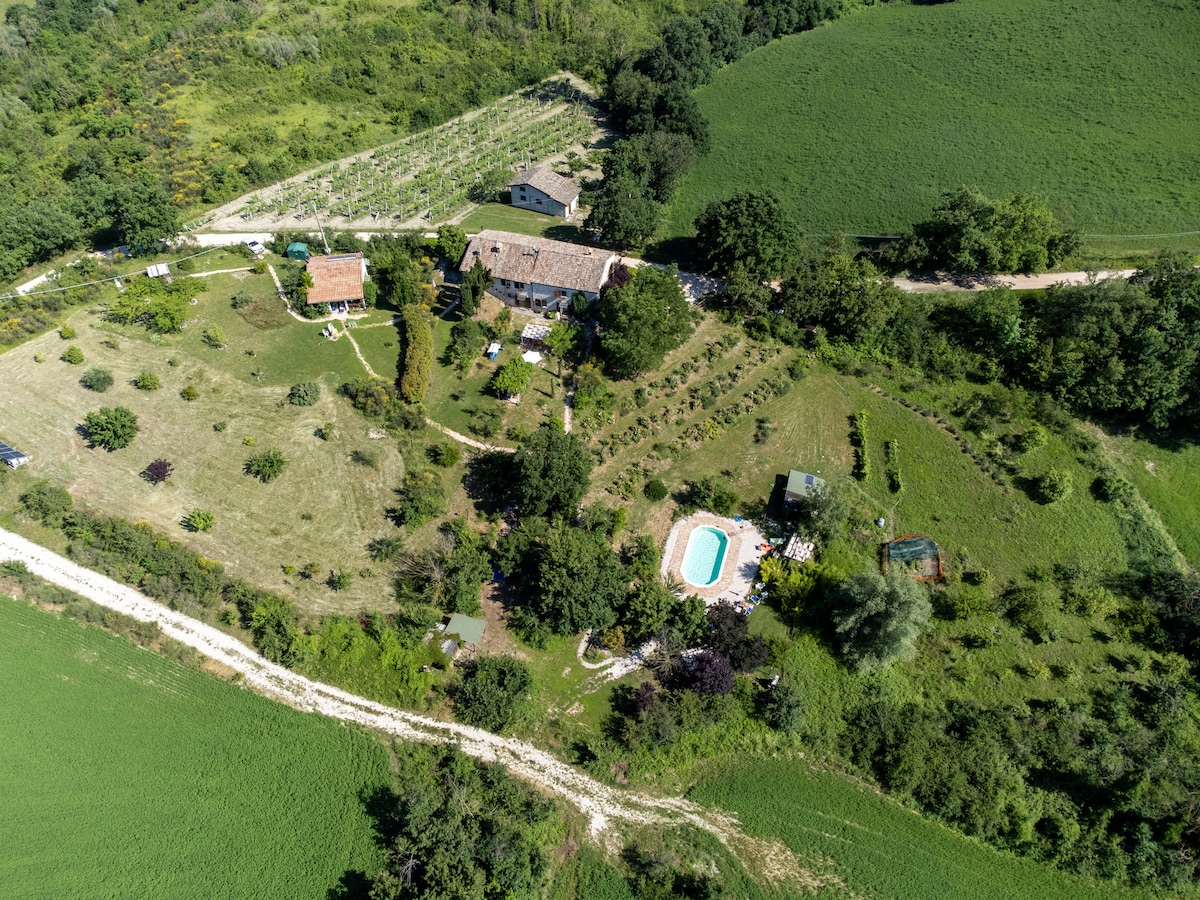 Tumtha sa radharc iontach ar Shliabh Catria, tairgtear an teach feirme seo do dhaoine a bhfuil suaimhneas agus galántacht acu. Rinneadh é a athchóiriú ag coinneáil tréithe theach tuaithe Marche gan athrú, agus iad á gcur le chéile le réitigh ailtireachta an taobh istigh, atá feistithe le feistis dearthóra. Tá lochán saorga, garrán darach agus páirceanna labhandair agus helichrysum sa réadmhaoin, óna mbainimid an ola riachtanach. Tógadh bith - linn snámha le déanaí.