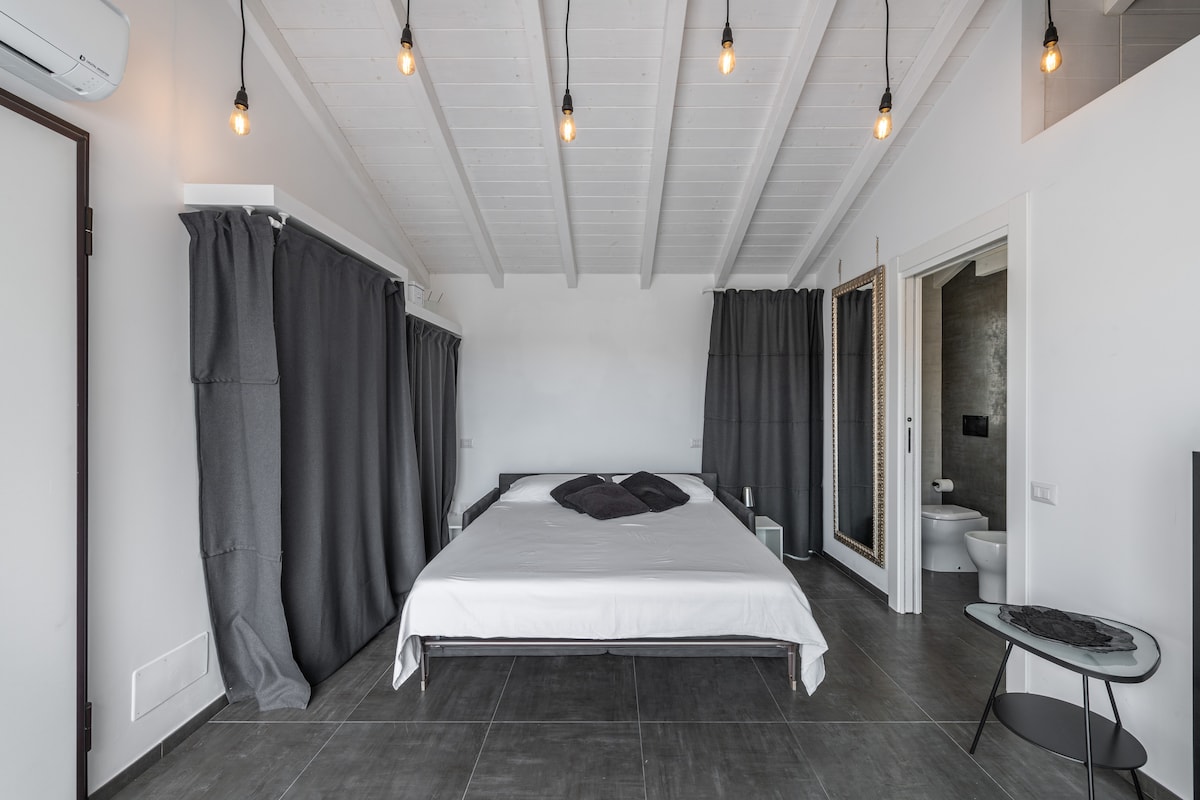 Stiúideo nua neamhspleách 30 méadar cearnach le ardán mór feistithe le hithe agus sunbathe. Caith cloch ón bhfarraige, le radhairc iontacha ar Mhurascaill Cagliari agus ar an Devil's Saddle cáiliúil. Beidh an deis agat sásamh a bhaint as an bhfarraige atá suite go compordach ar an leaba. Suite ar an dara hurlár de villa le rochtain neamhspleách trí staighre seachtrach. Feistithe le gach compord: cistinéad, cithfholcadán, cuisneoir, teilifís, Wi - Fi, aerchóiriú, línéadach leapa, tuáillí, tuáillí trá agus scáth fearthainne.