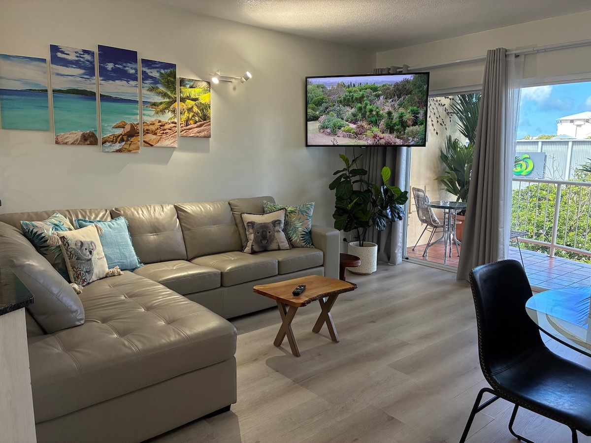 Tóg isteach an ghrian faoi 9 linn snámha timpeallaithe ag gairdíní trópaiceacha méithe, cathaoireacha deice agus beárbaiciú géar agus giomnáisiam laistigh ar thaobh do dhoras sa seomra suí príobháideach saoire seo. Bródúil as ár n - árasán nua - stílithe cúisíní dearthóra, suíomh boird, línéadach só, tocht earrach póca nua ar ardchaighdeán, meaisín caife nua agus tá sé trealmhaithe go hiomlán don fhanacht foirfe. Níl ach siúl 15 nóiméad go lár na cathrach, 20 go dtí an Esplanade, agus 20 go dtí ionad siopadóireachta Cairns.