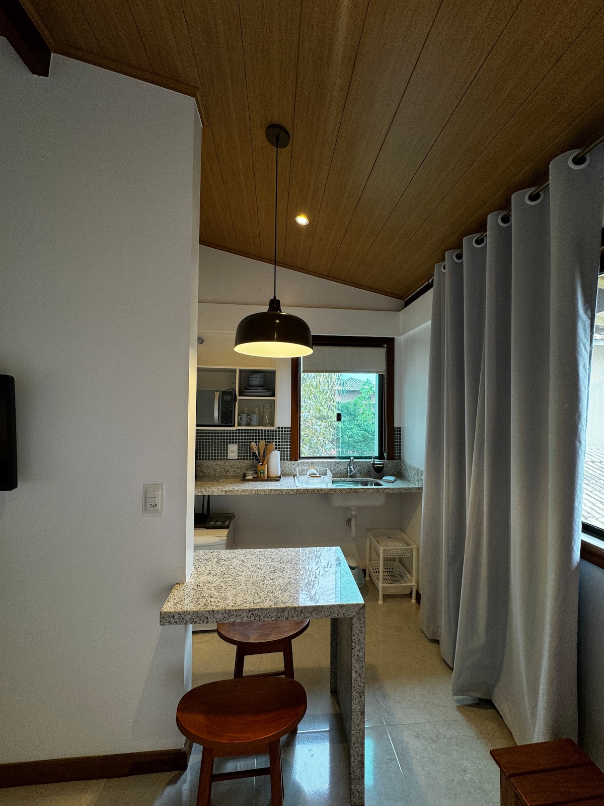Lochta le haghaidh suas le 3 dhuine le haerchóiriú, leaba dhúbailte le línéadach leapa agus folctha, seomra folctha príobháideach, leaba thoilg, cistin feistithe le sorn, cuisneoir, chomh maith le balcóin. Tá suíomh iontach ag an árasán níos lú ná 100 méadar ó fharraige chiúin gan aon tonnta. Tá Vila Caicás suite i sráidbhaile Gamboa do Morro, áit chiúin agus chluthar dóibh siúd atá ag lorg laethanta suaimhneacha le teaghlach nó le cairde. Is siúlóid 30 nóiméad é an sráidbhaile go Morro de São Paulo.