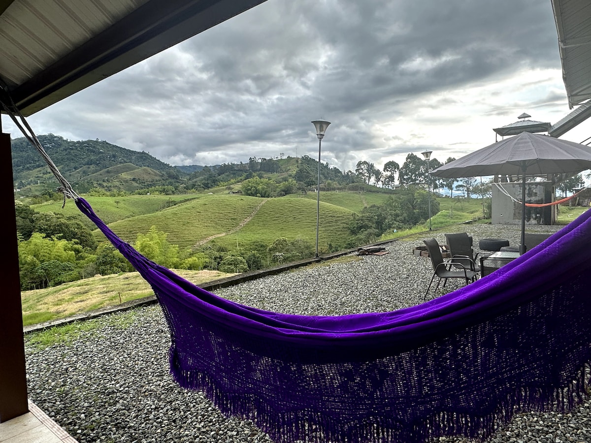 ag fanacht i lár an dúlra agus suaimhneas más FÉIDIR! Tar agus roinn an spás iontach seo le do theaghlach, díreach cúig nóiméad ó phríomhchathair an chrainn chaife, aimsigh an spás iontach seo chun taitneamh a bhaint as mol caife na Colóime, le déanamh agus le cuairt a thabhairt air. Beidh tú in ann cuairt a thabhairt ar Salento, Cocora Valley, an pháirc caife agus go leor eile freisin. Tabhair faoi deara : sula ndéanfaidh tú áirithint seiceáil ar an luach - braitheann sé seo ar líon na ndaoine le fanacht.