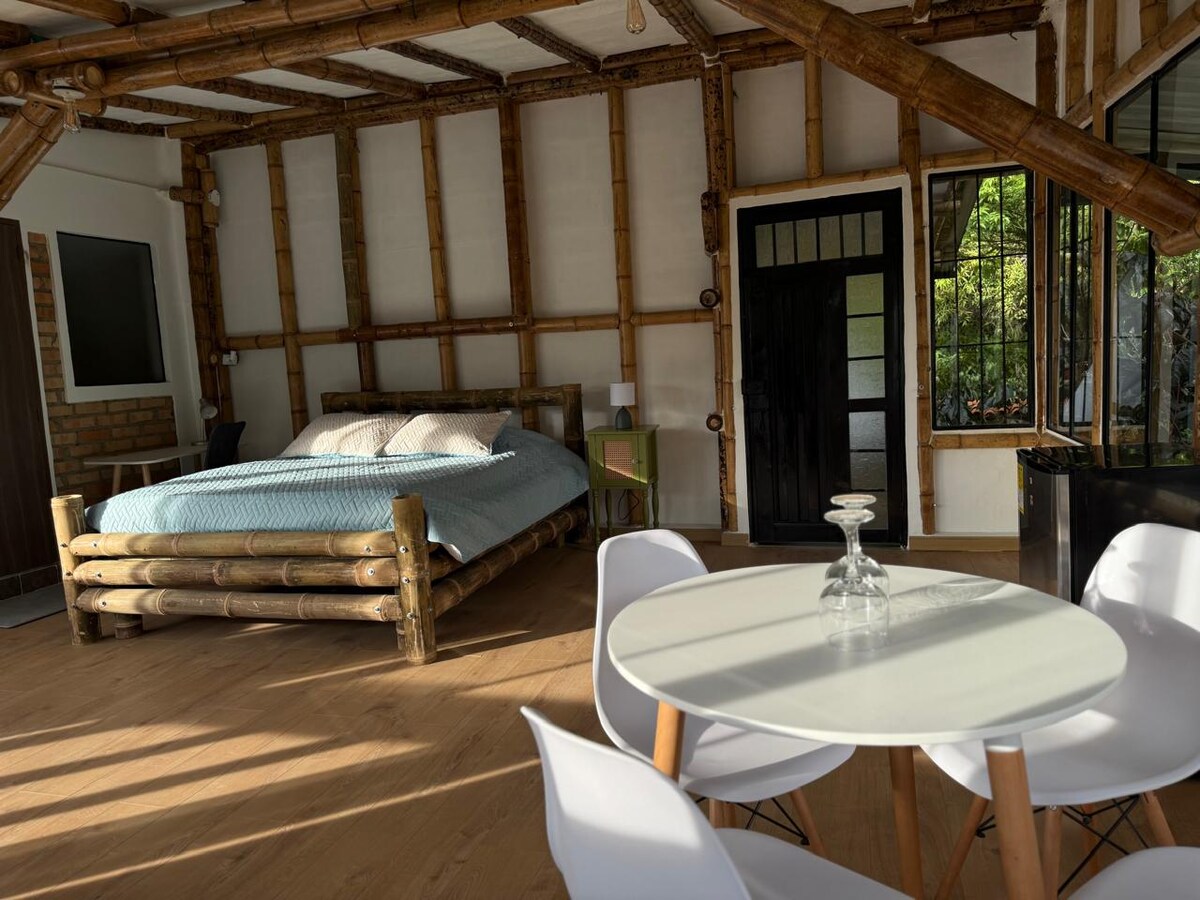 Fáilte chuig an apartheostudio foirfe i gcroílár Popayán, atá suite i gcomharsanacht álainn Santa Clara! Tá an t - árasán cluthar seo oiriúnach dóibh siúd atá ag lorg compoird agus áise le linn a bhfanachta sa chathair stairiúil seo. Le maisiúchán nua - aimseartha agus galánta, cuireann an partaestudio seo atmaisféar teolaí suaimhneach ar fáil chun tú a chur ar do shuaimhneas ón nóiméad a shiúlann tú tríd an doras.