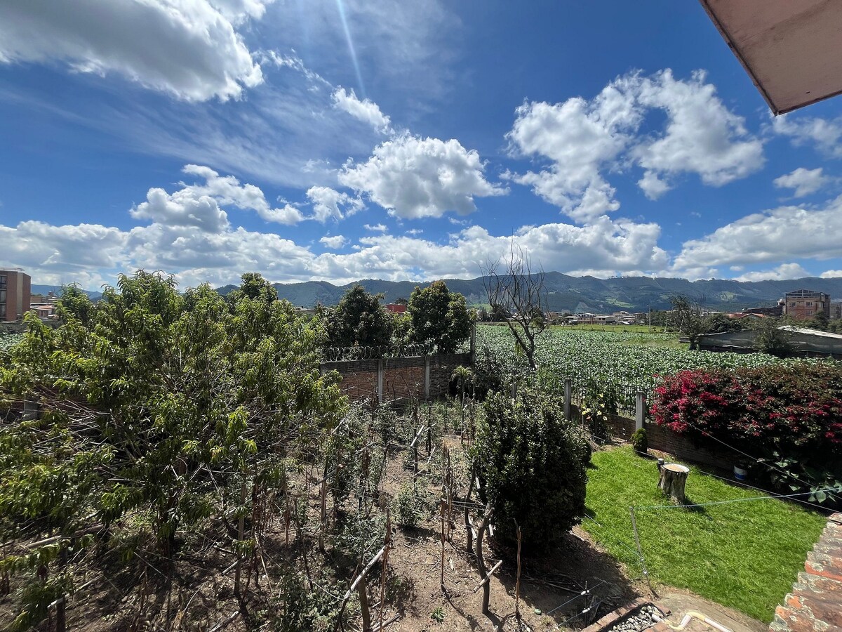 Espacio luminoso y elegante con baño privado y vista panorámica hacia las montañas. Estarás cerca de todo en un ambiente verde, aves y mascotas. Ubicada a 8 cuadras del Parque Principal de Cajicá, a 10 minutos en carro de Unimilitar y Unisabana, 15 minutos de la Catedral de sal, zona comercial, y vías de acceso a transporte público. Si prácticas el ciclismo, o eres nómada digital este es el lugar ideal, las estadías largas funcionan muy bien. Calor de hogar. Para reservar se solicita el ID.