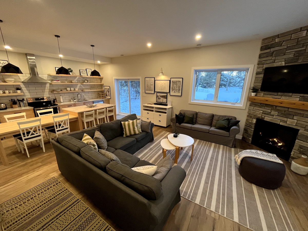 Éalaigh go Chalet Buckingham, tearmann iontach ceithre shéasúr atá suite ar 3 acra de imeall uisce Abhainn Ottawa. Suite 45 nóiméad ar a mhéad ó Ottawa agus 5 nóiméad ó bhád farantóireachta Quyon, tá teacht éasca ar an saoire shuaimhneach seo agus is áit shuaimhneach í chun éalú ón gcathair. Bain sult as báid bheaga agus bréagáin uisce sa samhradh, cócaráil sa chistin mhór lasmuigh ina bhfuil beárbaiciú + oigheann píotsa, agus lig do scíth sa tobán te foscúil 8 nduine atá ar fáil ó cheann ceann na bliana. Faigh suaimhneas agus eachtra in aon cheann scríbe foirfe amháin.