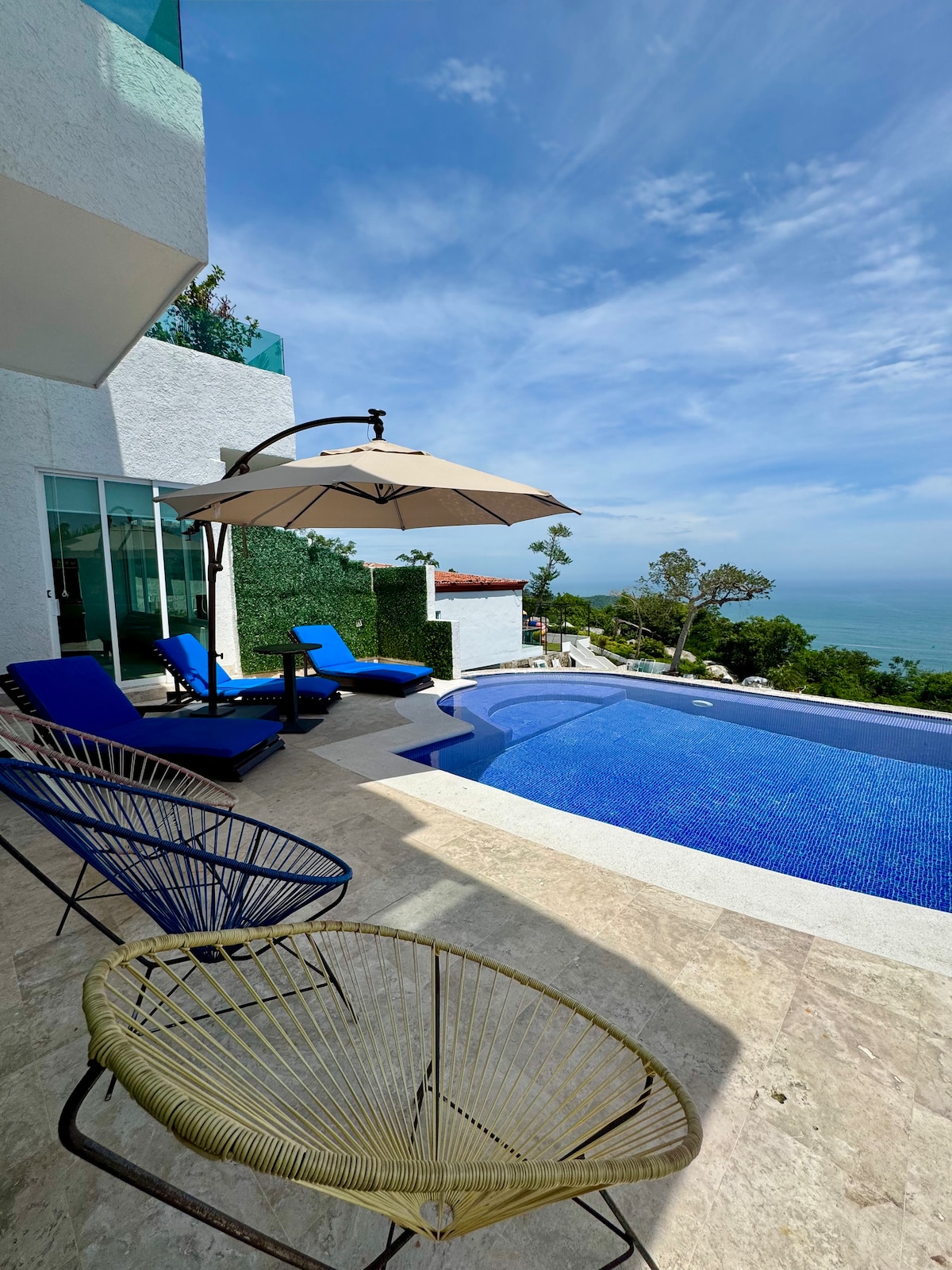 Árasán iontach ina bhfuil 5 sheomra leapa, a thairgeann an radharc is fearr ar an aigéan in Acapulco Diamante, atá foirfe do theaghlaigh, ina bhfuil bialanna agus bia idirnáisiúnta laistigh de 5 nóiméad, beár sneaiceanna ar phraghsanna an-ínmhianaithe, agus áiteanna fairsinge galánta. Páirceáil chlúdaithe. Tá na díonbhráin trá eisiach don chomhbhuanú agus tá leapacha gréine, cathaoireacha agus boird san áireamh. Tá mo lóistín iontach do theaghlaigh nó do eachtraí. Rialacha iompair dochta.