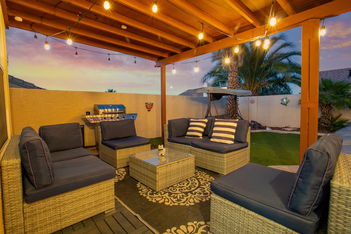 An bhfuil tú ag lorg an tí fhoirfe le haghaidh saoire shíochánta? Féach ar bith eile, níl inár dteach folctha teolaí 3 leaba 2 ach an áit! Neadaithe i gcomharsanacht Henderson díreach taobh amuigh de Las Vegas, is é an teach seo an saoire ghrúpa fhoirfe. Téigh ar thuras gairid chuig an Stráice nó bain sult as ár dtroscán lasmuigh, ár dtobán te, agus ár ngríoscán beárbaiciú inár gcúlchlós príobháideach. Tá feistis nua - aimseartha, teilifíseáin Chliste le Hulu, Netflix, Disney+, Youtube TV (cábla), agus tonna níos mó siamsaíochta sa teach seo!