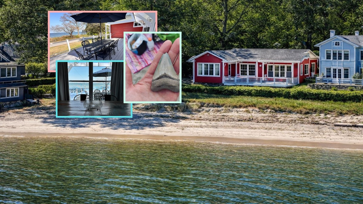 Teach ar imeall an uisce le trá phríobháideach agus an ché