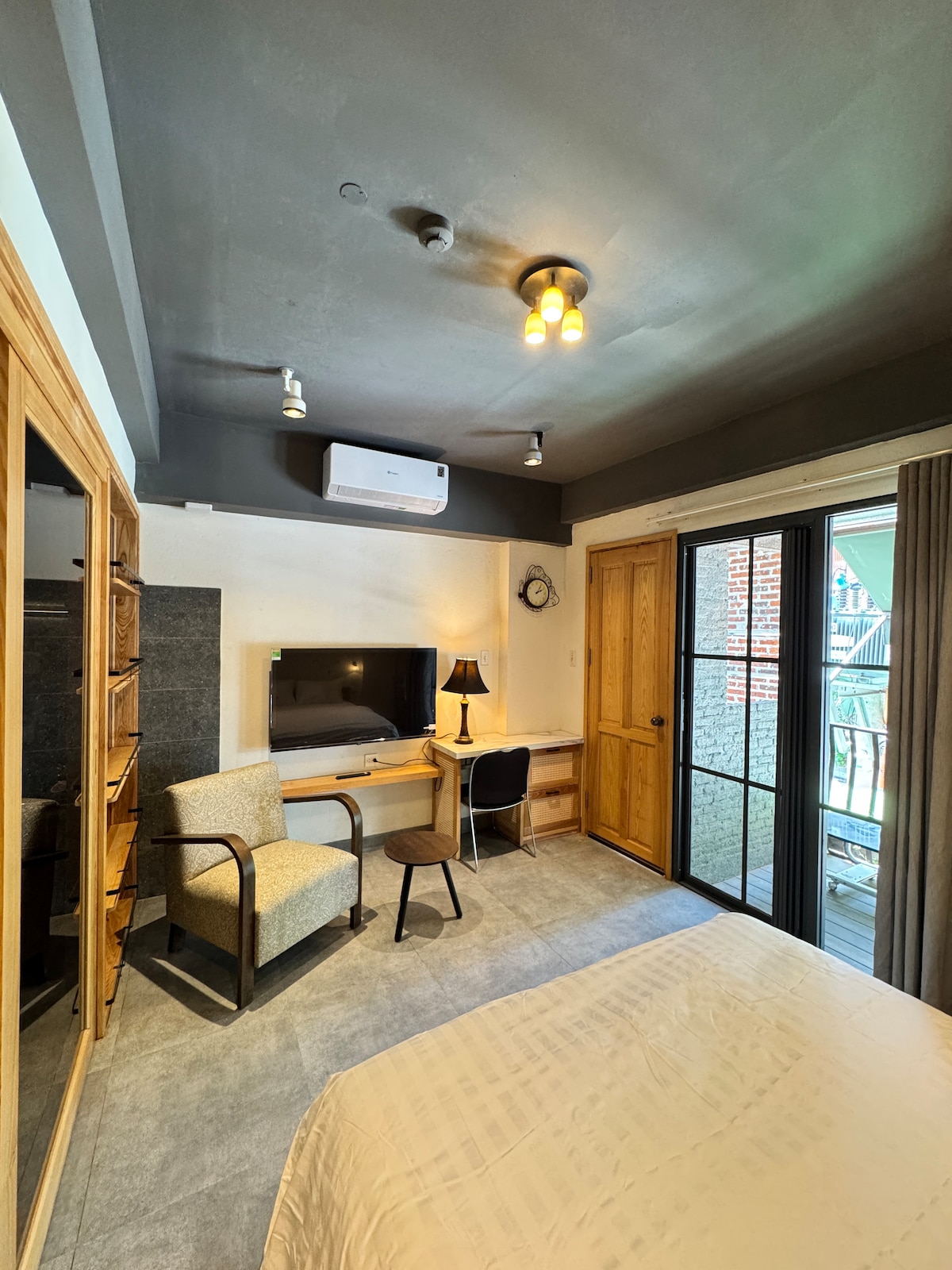 Tá balcóin mhór in aice le trá My Khe ag an árasán stiúideo.