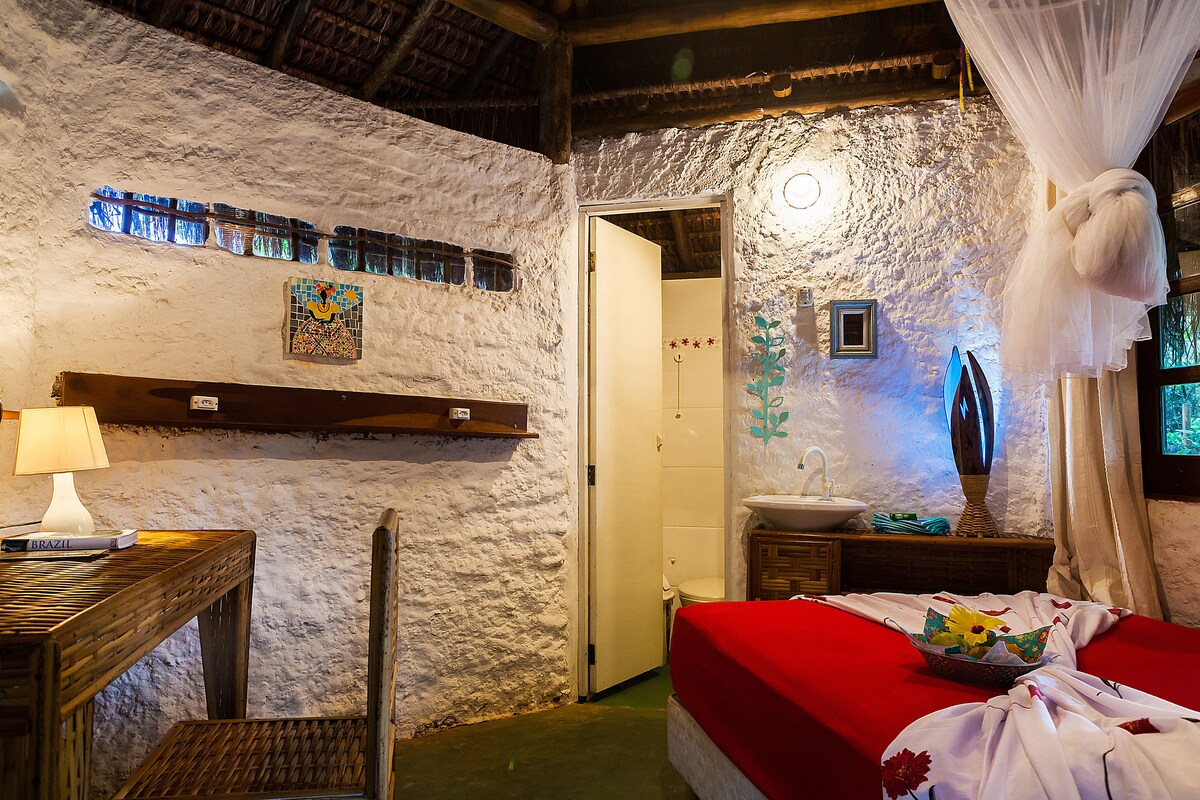 Cos Charmmoo Village sa ghaineamh, le rochtain phríobháideach ar thrá álainn an fhanachta. Timpeallacht chompordach, atá feistithe agus eagraithe go hiomlán le gach gean agus cúram duit chun cuimhní grá, síochána agus áthais a chaitheamh in áit phribhléideach. Tá timpeallachtaí aerchóirithe (seomraí leapa agus seomra), Smart TV 65”, Wi - Fi, meaisín níocháin agus triomadóir, 02 cuisneoirí inár sráidbhaile. Chomh maith le linn snámha álainn, spás gourmet, clós súgartha do pháistí, cúirt ghainimh agus rua - adhmad os comhair fharraige álainn ITACIMIRIM.
