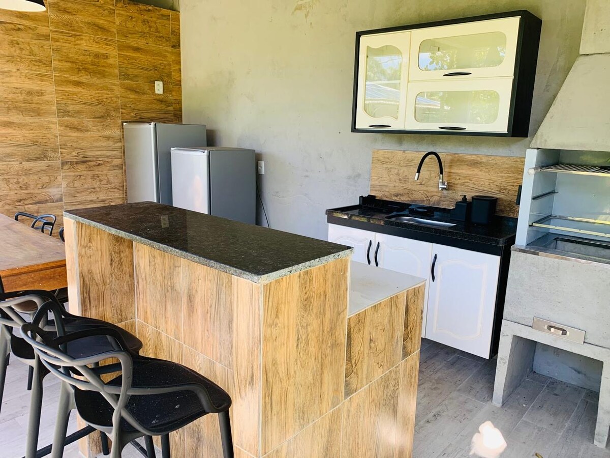 Teach álainn i stíl Bungaló, atá lonnaithe in Condomínio Varandas do Mar, le bonneagar den scoth agus rochtain phríobháideach ar an trá! Tá an spás feistithe go hiomlán! Tá seomra suí ann ina bhfuil Teilifís Chliste, cistin iomlán agus 2 sheomra. Ina theannta sin, tá beárbaiciú agus balcóin iontach ann chun do scíth a ligean.