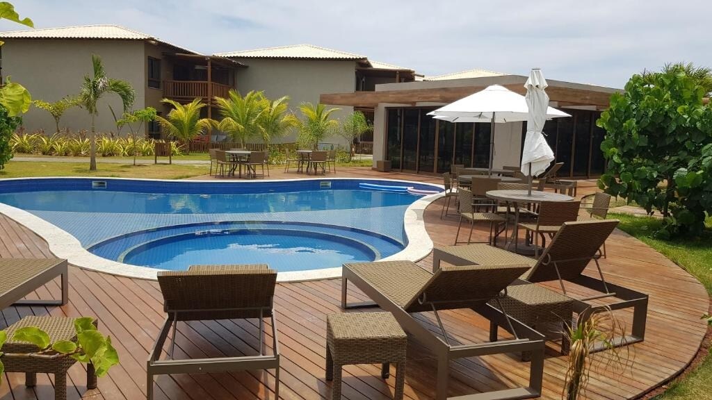 Lig do scíth leis an teaghlach ag Tavarua Itacimirim, cois trá, agus gar do Praia do Forte agus Guarajuba. Tá garáiste faoi thalamh ag an árasán do 2 fheithicil, 4 linn snámha, seomra cluiche, 2 mheaisín oighir i gclós súgartha do pháistí móra agus seomra aclaíochta aerchóirithe. Fan i mbungaló déphléacsach i stíl Balinēs ina bhfuil 3 sheomra mhóra, aer, Wi - Fi, oigheann agus sorn, micreathonnán, grúdlann, teilifís 75", íontóir uisce, déantóir caife leictreach agus uirlisí cistine. Gairdín le Sofas ar fhéar agus 2 bhalcóin.