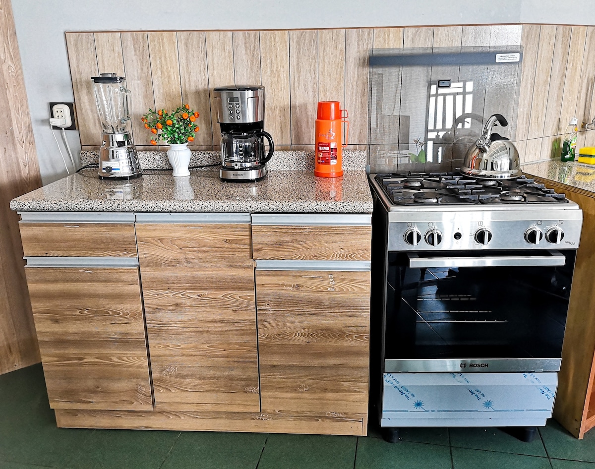 Mini departamento totalmente equipado, a solo 5 minutos caminando del centro de Chimbote. Estacionamiento gratuito en calle. A unas cuadras del malecón. Cerca a minimarket y mercado. En plena avenida. Ideal para parejas o viajeros ejecutivos. Cuenta con 1 habitación con cama de 2 plazas, escritorio para trabajar, baño privado con terma, cocina completa, pequeña sala y comedor, Smart TV, Netflix, WiFi, entrada independiente. Espacio moderno, cómodo y tranquilo para una estadía privada.