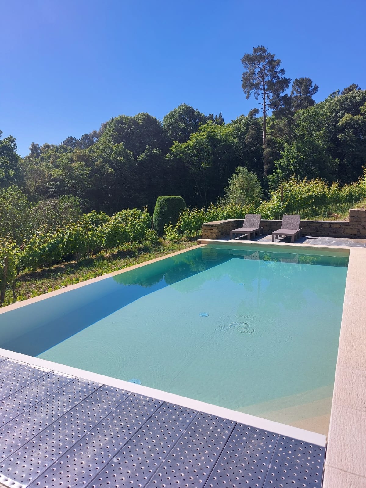 Bain sult as teach tuaithe uathúil, timpeallaithe ag fíonghoirt agus coillte, le radhairc iontacha. Lig do scíth ar an bpóirse mór nó fuaraigh sa linn snámha phríobháideach, agus tú ag tumadh tú féin i suaimhneas an dúlra. Chun d'fhanacht a dhéanamh níos speisialta fós, is féidir leat lón blasta a ordú nó taitneamh a bhaint as blaiseadh d'fhíonta an réigiúin. Sa tráthnóna, tugann an sorn compord agus teas, rud a chruthaíonn an suíomh foirfe do chuimhneacháin dhodhearmadta le do theaghlach agus le cairde. Eispéireas fíor - uathúil.