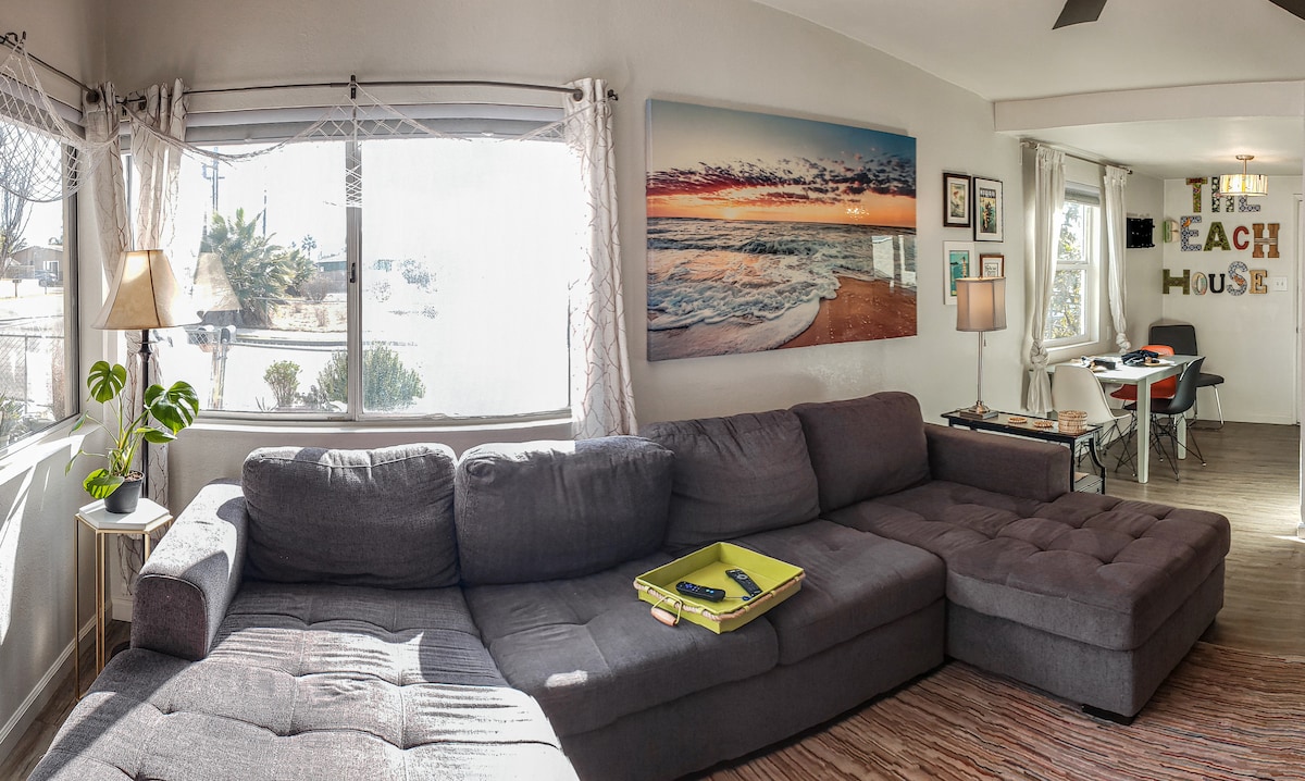 Bain sult as an Ocean Vibe, agus bí ag fuarú sa Teach Trá Úr/Hip Deartha! Tá paitió príobháideach ollmhór sa teach trá seo atá nuashonraithe, le Fire - Pit, BBQ, Scáth, atmaisféar iontach chun scíth a ligean tar éis lá lán le spraoi ag an trá! Caibinéid nua, bairr cuntair, fearais déanta as cruach dhosmálta, flooring, troscán dearthóir! Gach rud a theastaíonn uait chun taitneamh a bhaint as Cathair Trá: Cláir surfála, cláir boogie, rothair cúrsóra trá, cathaoireacha trá, scáth trá, liathróid céaslóireachta, peil, vaigín trá le haghaidh iompair éasca!