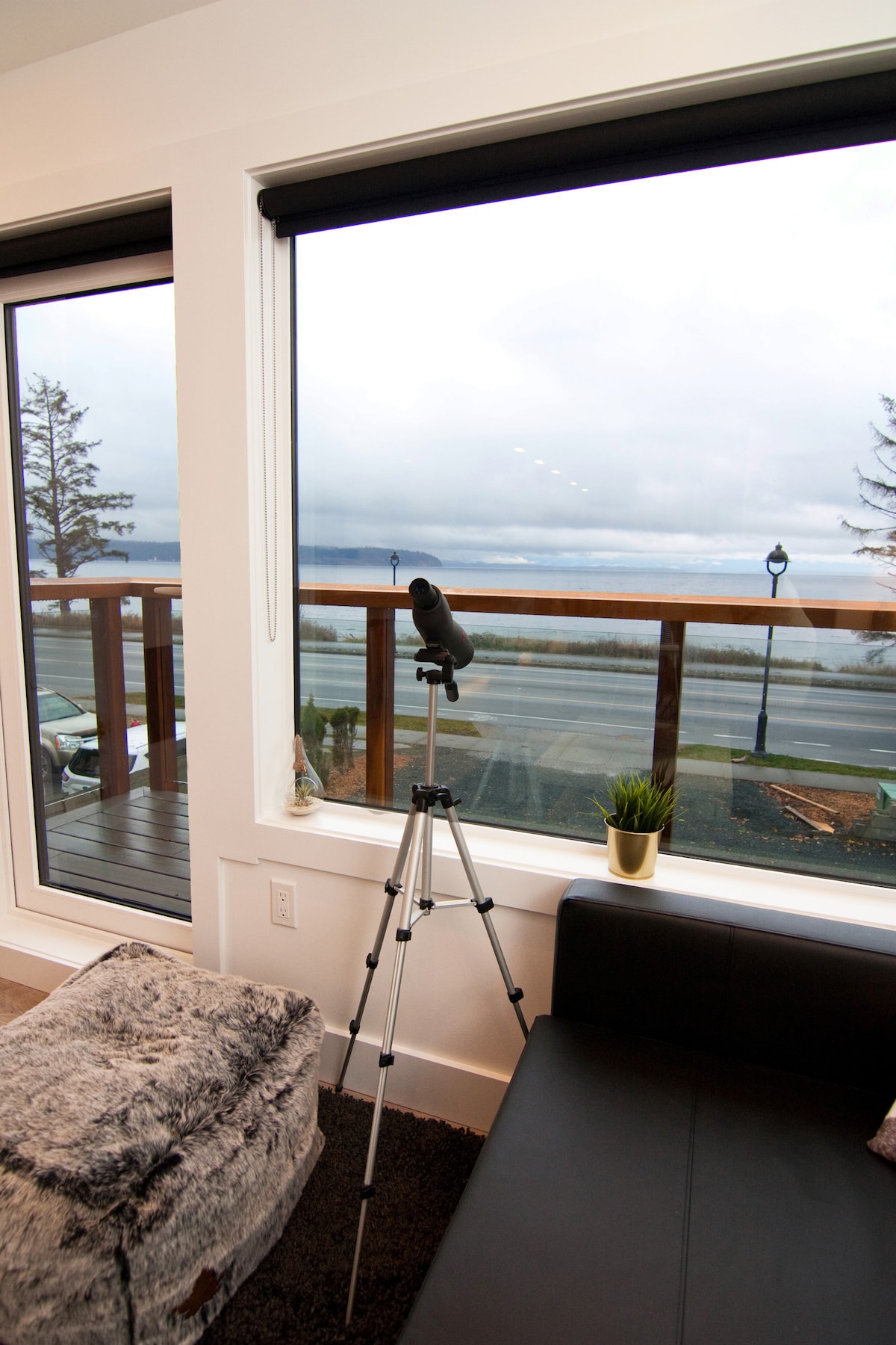 Déan iniúchadh ar bhliss cois cósta inár svuít cois farraige ar an gCósta Thiar in Campbell River, díreach 30 nóiméad ó Mount Washington agus neadaithe laistigh d'achar tiomána gar do Rinn na Sailí agus lár an bhaile. Bain sásamh as radhairc lánléargais ar an aigéan agus ar shléibhte agus fiadhúlra ó iolar maol go deilfeanna, le feiceáil fiú ó do thobán folctha. Roghnaigh ó chistinéad nó beárbaiciú agus lig do scíth sa pholl dóiteáin. Tum thú féin i suaimhneas, áit a gcruthaíonn fuaimeanna soineanta na farraige tearmann síochánta. Tá do shaoire cois cósta ag fanacht leat!