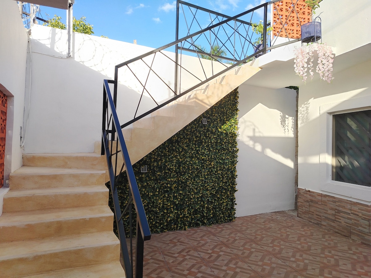 Bain sult as eispéireas galánta sa lóistín lárnach seo, gan ach siúlóid 8 nóiméad ón Ionad Stairiúil agus Malecon agus siúl 10 nóiméad ón Ionad Stairiúil agus 10 nóiméad ó Lár an Bhus Láir. Ideal do thurasóirí a thagann chun aithne a chur ar an gCathair. 2 nóiméad ón Ollmhargadh, atá lonnaithe i lár av. lárnach - príomh. Tá rochtain díreach ón tsráid, trí staighre bíse ar an dara leibhéal.