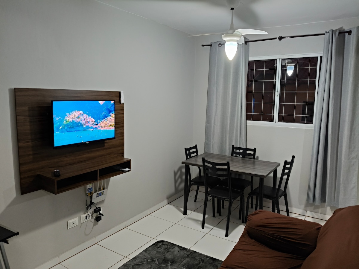 Bain sult as eispéireas galánta stiúideo atá suite go maith in Campo Grande - MS, agus línéadach tí san áireamh. In aice le hollmhargadh, cógaslanna agus bialanna. Tá leaba dhúbailte agus leaba thoilg ann. Feistithe le: Wi - Fi, 42”teilifís chliste, aerchóiriú scoilte, seomra folctha agus cistin dhlúth le sorn, micreathonnán agus mionbheár.