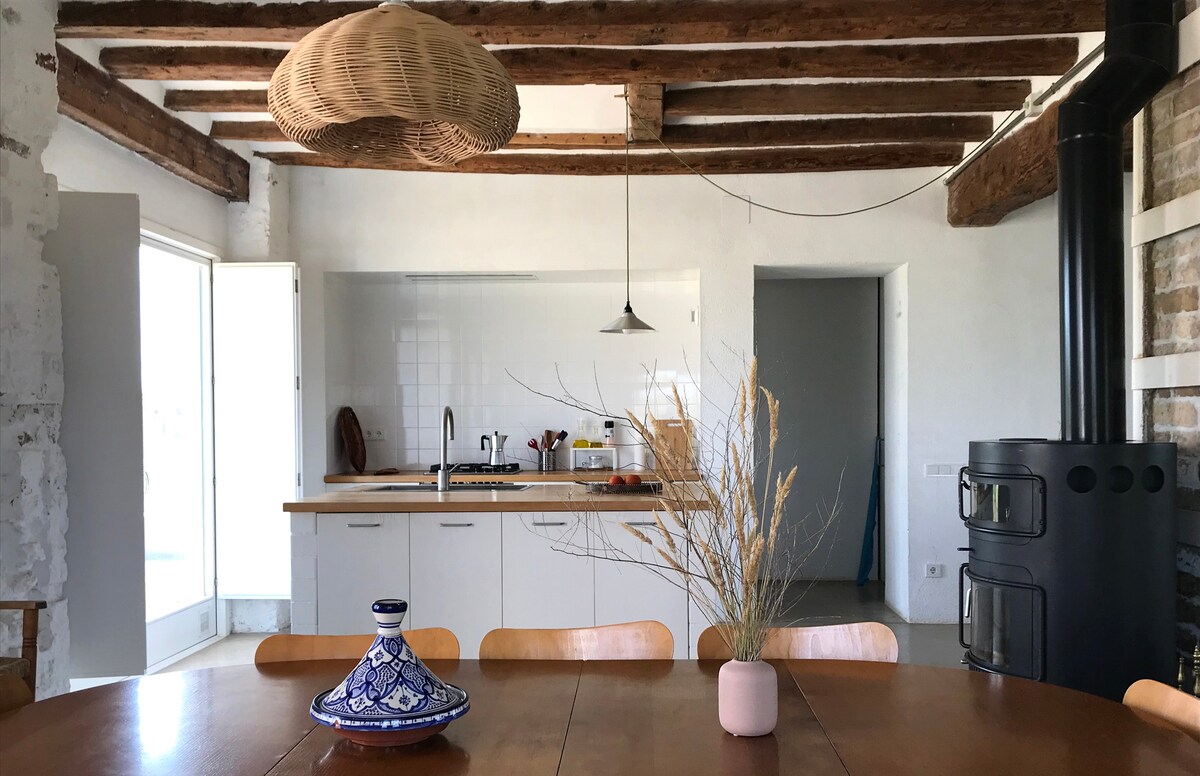 Teach ar imeall na farraige i nDeilt Ebro, l'Ampolla Ar an líne thosaigh, le rochtain dhíreach ar thrá chloiche ciúin agus rochtain láithreach ar Camino de Ronda, a ritheann feadh na n-aillte agus na gcuas. Ní théann aon fheithiclí idir an teach agus an trá. Tá sé 10 nóiméad ar shiúl ó lár na cathrach, ceantar cónaithe ciúin, atá foirfe chun scíth a ligean agus taitneamh a bhaint as timpeallacht nádúrtha na Deilt. Athchóirithe le déanaí, ionas gur féidir lenár n-aíonna taitneamh a bhaint as cúpla lá speisialta cois na farraige.