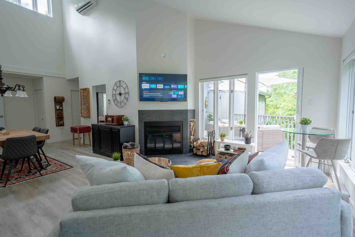 Tearmann sléibhe cluthar, spreagtha ag lár an chéid i Whistler, BC. BUNTÁISTÍ AN TSUÍMH: Siúlóid ◦ 3 nóiméad ó gondola nua ◦ 5 nóiméad tiomáint chuig Sráidbhaile Whistler ◦ Céimeanna ó chuid de na siopaí/bialanna is fearr in Whistler ◦ Rochtain éasca ar an mórbhealach BUNTÁISTÍ AN SPÁIS: ◦ Taobh istigh nua - aimseartha trendy, cluthar, lár an chéid ◦ Duivé agus piliúir shómasacha Teallach ◦ leictreach ◦ Feistis ar ardchaighdeán i spás nua - athchóirithe Píosaí seanré◦ uathúla ar fud ◦ Seinnteoir ceirníní ◦ Go leor solais nádúrtha
