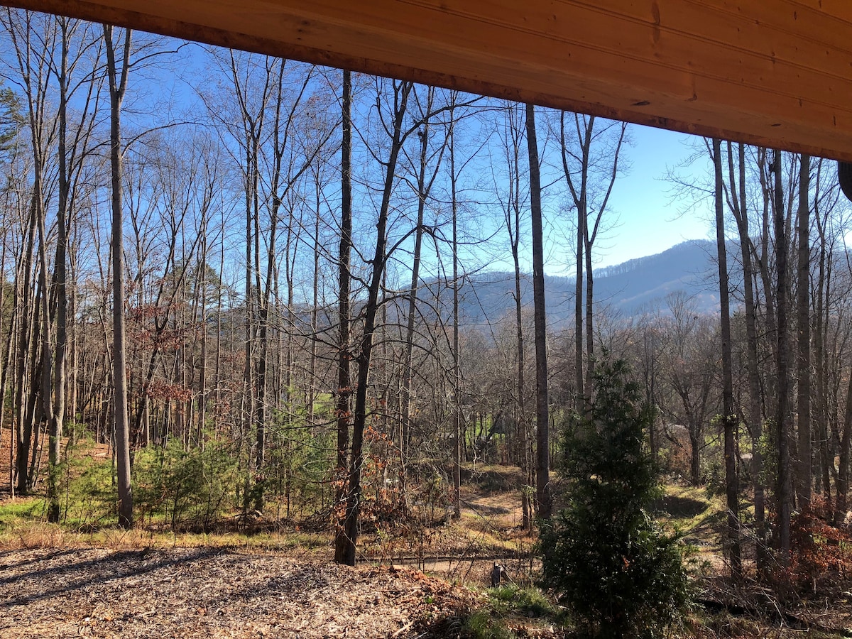 Ag deireadh cove, cuireann Mighty View Cabin meascán foirfe de atmaisféar compordach nua - aimseartha só nua - aimseartha síochánta agus cábáin shíochánta shíochánta. Bain sult as 4+ acra talún agus bí réidh leis na radhairc is suntasaí. In aice le cathair spraíúil Asheville (20 míle), agus gach a bhfuil le tairiscint ag WNC, tá an cábán seo ina bhunáit iontach do do thaiscéalaíochtaí agus do ghníomhaíochtaí. Is féidir leat fanacht freisin chun tús a chur ar ais agus do scíth a ligean ar an bpóirse, sa tobán te nó os comhair tine. Nuair a bheidh tú anseo, ní bheidh tú ag iarraidh imeacht.