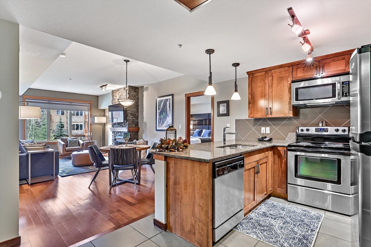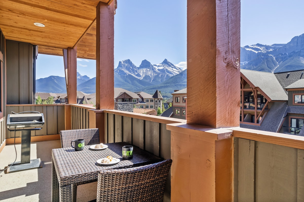 Ceann de na cinn is fearr in Canmore, tá Svuít aon seomra leapa sómasach (ar féidir léi 4 dhuine a chodladh) i gcroílár na Sléibhte Creagacha ar an tríú hurlár, rud a thugann radharc álainn ar Thriúr Deirfiúracha. Pas pearsanta Idirlín Ardluais agus Banff Complimentary & séasúr an cheantair. Sa tsraith seo tá cistin gourmet iomlán, áiteanna bia & maireachtála, cuisneoir fíona, meaisín níocháin agus triomadóir, 2 theallach, 2 theilifíseán ar scáileán cothrom, balcóin phríobháideach fhairsing, seomra folctha atá spreagtha ag spa, fuinneoga móra, páirceáil théite, agus idirlíon gan sreang saor in aisce.