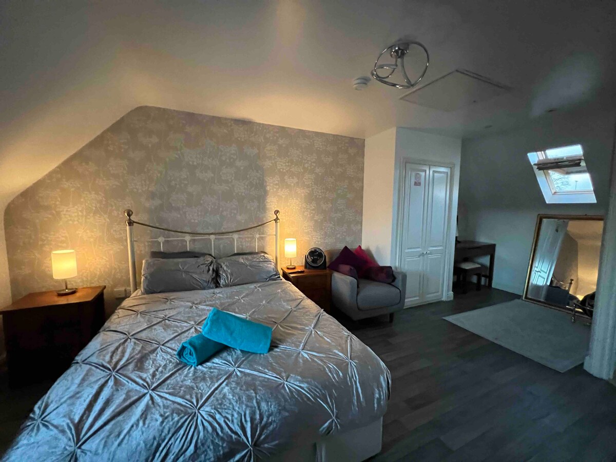 Lig do scíth sa seomra dúbailte cluthar féinchuimsitheach seo atá suite i gcroílár Staffordshire. Foirfe do lánúineacha nó do thaistealaithe aonair, cuireann an tearmann príobháideach seo páirceáil saor in aisce, saoráidí nua - aimseartha, agus rochtain éasca ar fáil ar Alton Towers, Cannock Chase (+ Imeachtaí), agus ar thuath ghalánta Staffordshire lena n - áirítear Shugborough. Bain sult as bia in aice láimhe, cosáin siúil agus nithe is díol spéise. Foirfe le haghaidh saoire shíochánta nó saoire ghearr lán le heachtraí. Tá an dara seomra ar fáil againn freisin Seomra Dúbailte Féin - Choinnithe Uimh. 2.
