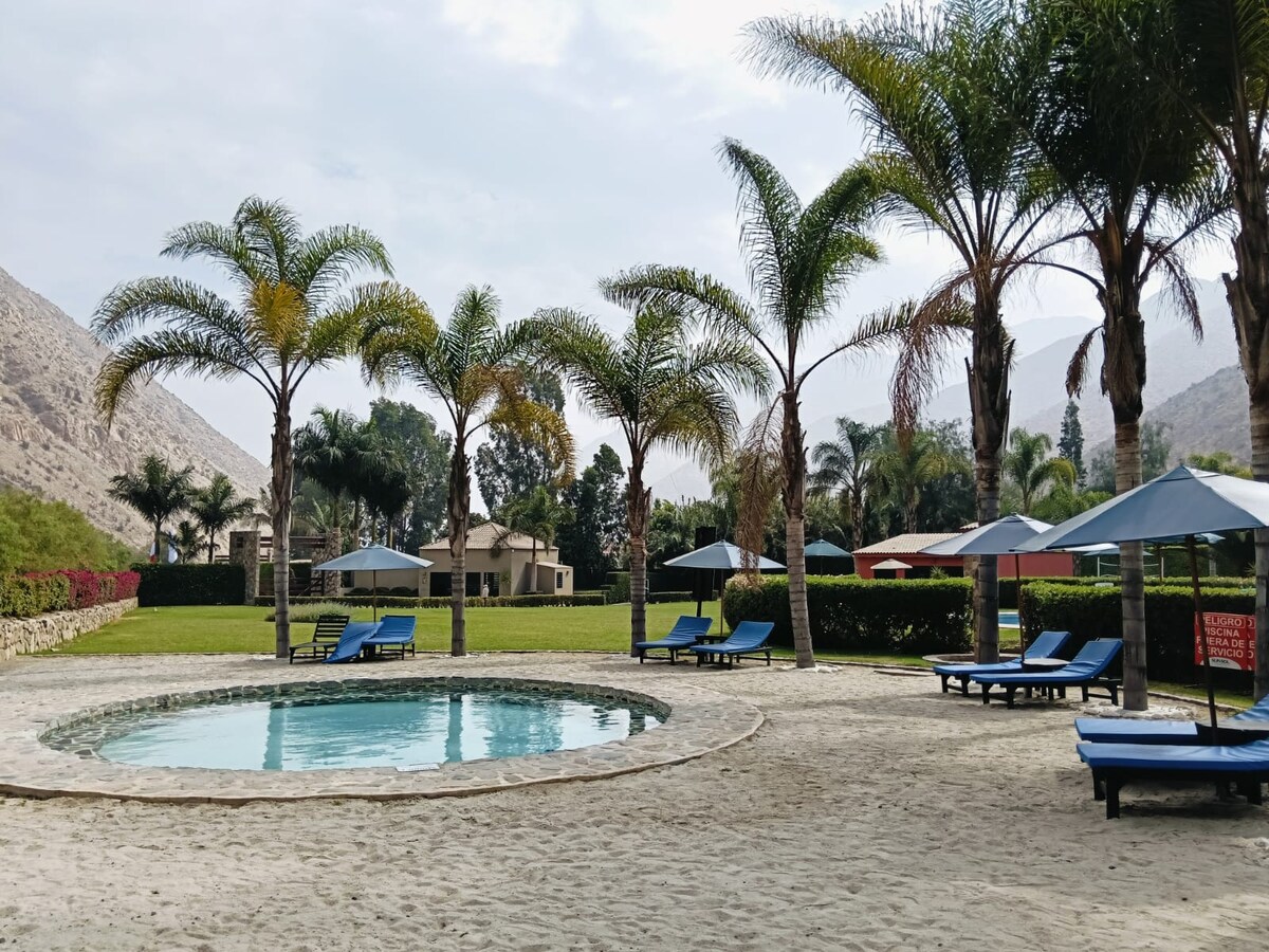 Ubicada a solo 2 horas de Lima en Santa Rosa de Quives, con sol todo el año y vistas hermosas a la serranía de Lima. Relájate con tu familia en este exclusivo bungalow privado con piscina, jacuzzi temperado (costo adicional de 80 soles por noche) y salida directa al río. Ideal para familias o grupos de 6 personas que buscan desconectarse, descansar y vivir una experiencia única en la naturaleza. Contararás con parrilla, caja china, Wifi en todas las instalaciones y Smart TVs. Somos Petfriendly.