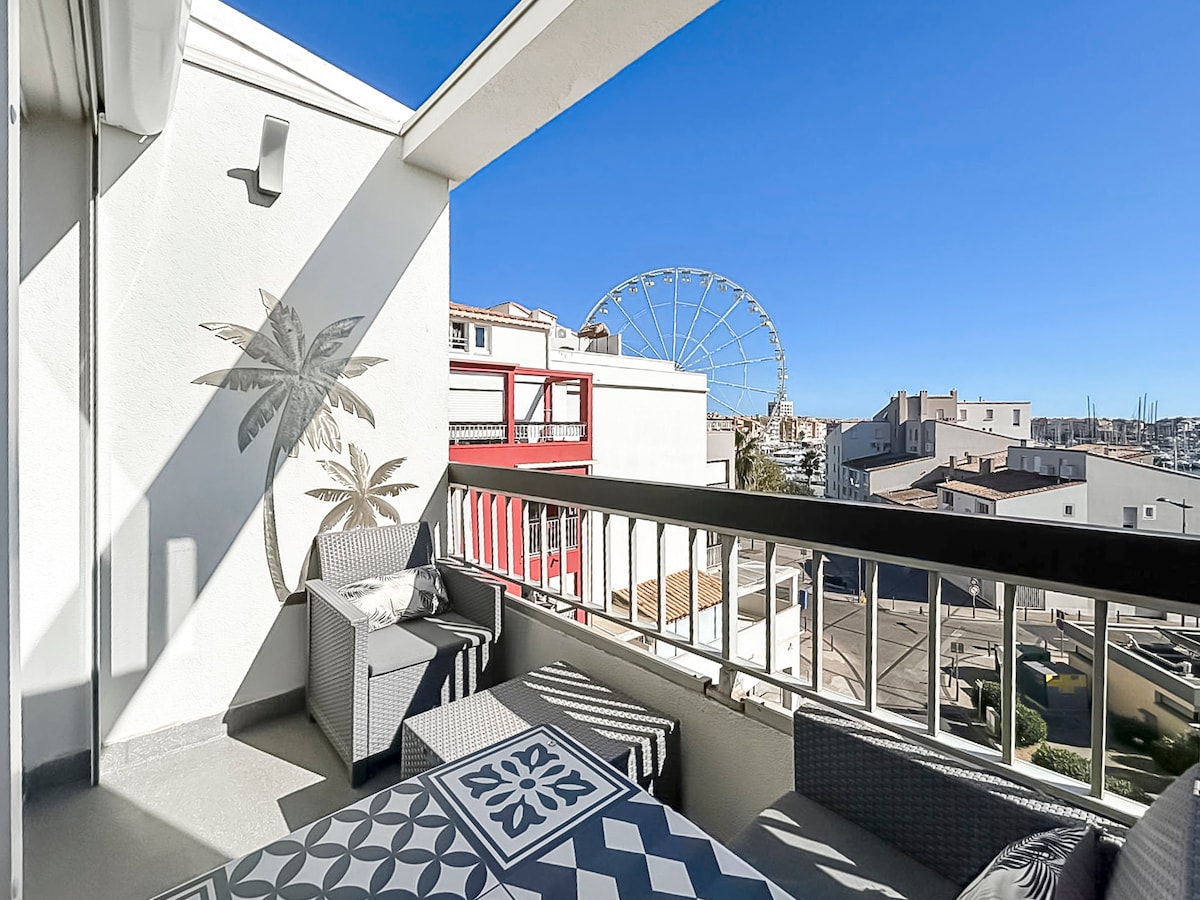 - Lóistíní ar cíos ag a bhfuil balcóin Cap d'Agde