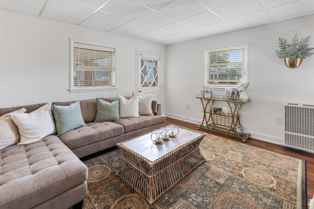 Fáilte go Casa del Mar — tearmann trá atá oiriúnach do mhadraí agus a bhfuil clós lánfhála aige, cúpla nóiméad ó Bhá Delaware. Lig do scíth inár seomra gréine faoi sholas na gréine (an áit is fearr le haíonna), cócaráil i gcistin lánstocáilte, agus féach ar luí na gréine ón deic. Leaba rí sa phríomh-svuít, leaba bhanríona sa dara seomra leapa. Tá cathaoireacha trá, Wi-Fi tapa, níochán éadaí agus bealach isteach gan eochair san áireamh. 5 nóiméad go Bayside Beach. 15 nóiméad go Cape May, Wildwood agus na fíonlanna. 100 léirmheas cúig réalta. Sáróstach. Tar agus bí i d'aoi againn.
