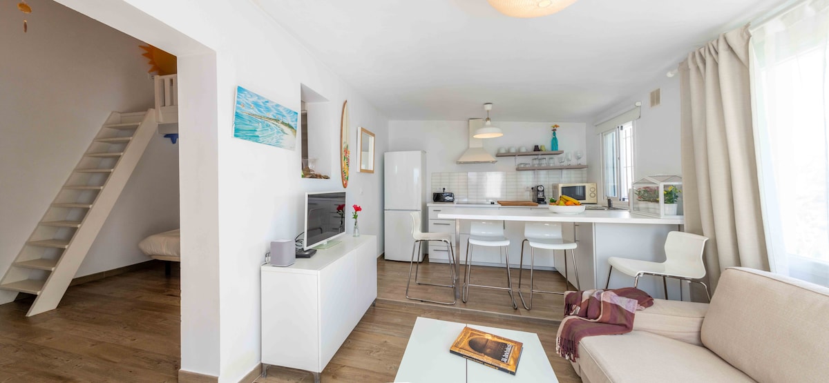 Lochta álainn geal le draíocht i bpobal ciúin, gar do thránna iontacha, sráidbhailte bána agus bia iontach. Le maisiúchán fíorálainn agus le gach sonra só agus sonraí sómasacha chun fanacht iontach a bheith agat. Ardán mór inar féidir leat taitneamh a bhaint as bricfeastaí, béilí, dinnéir agus naipcíní. Le gnáthstruchtúr den cheantar, déanann "Chozo" a thugann teas don áit uathúil é. Tá AA sa teach, cistin iomlán le meaisín níocháin, miasniteoir, Nesspresso, trealamh fuaime agus Teilifís Chliste.