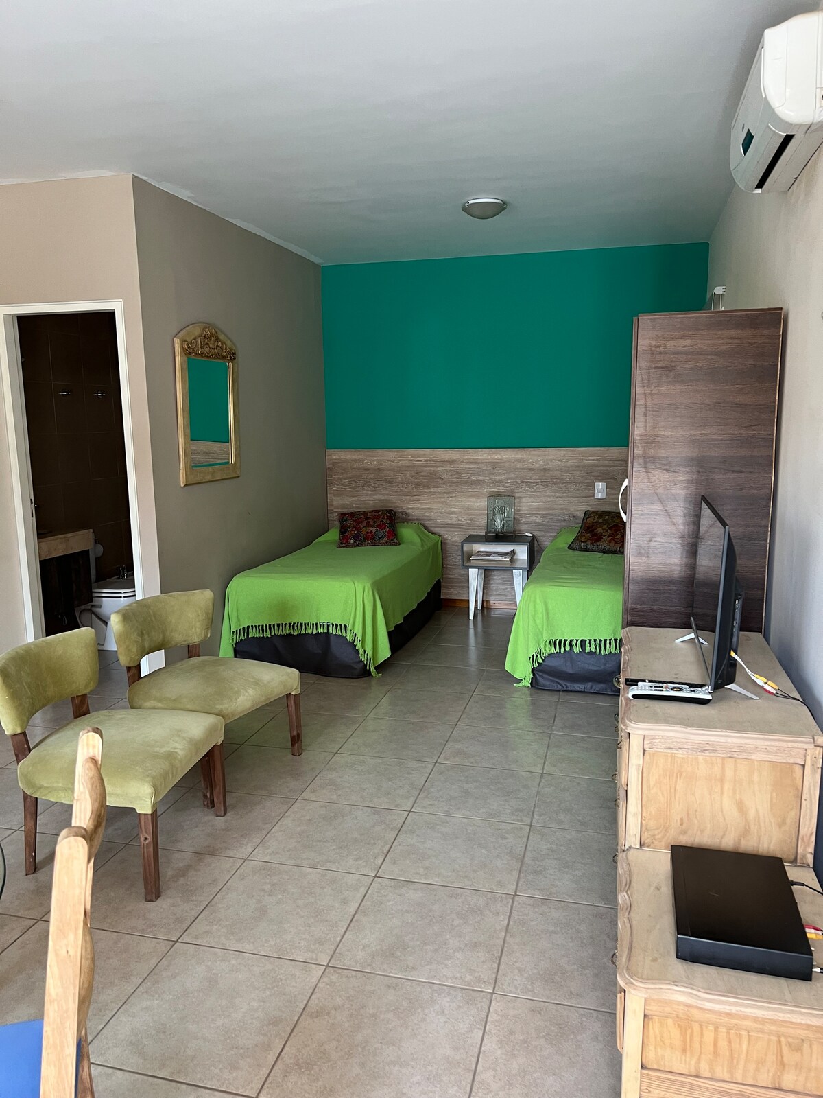 Fan ag an teach seo atá suite go lárnach ionas go mbeidh do theaghlach gar do gach rud. Táimid suite os comhair an Teatro del Bicentenario. Níl ach 6 bhloc ón bpríomhchearnóg 25 de Mhaigh Eo, tá an áit thar a bheith ciúin, tá bialanna éagsúla in aice láimhe. Tá línéadach leapa, tuáillí, saoráidí agus seomra folctha príobháideach sna seomraí. Cuirimid turais threoraithe ar fáil chuig an mbealach interlagos agus chuig na fíonlanna.