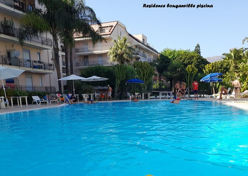 Tearmann lánléargais le linn snámha in aice le Taormina agus an Mhuir