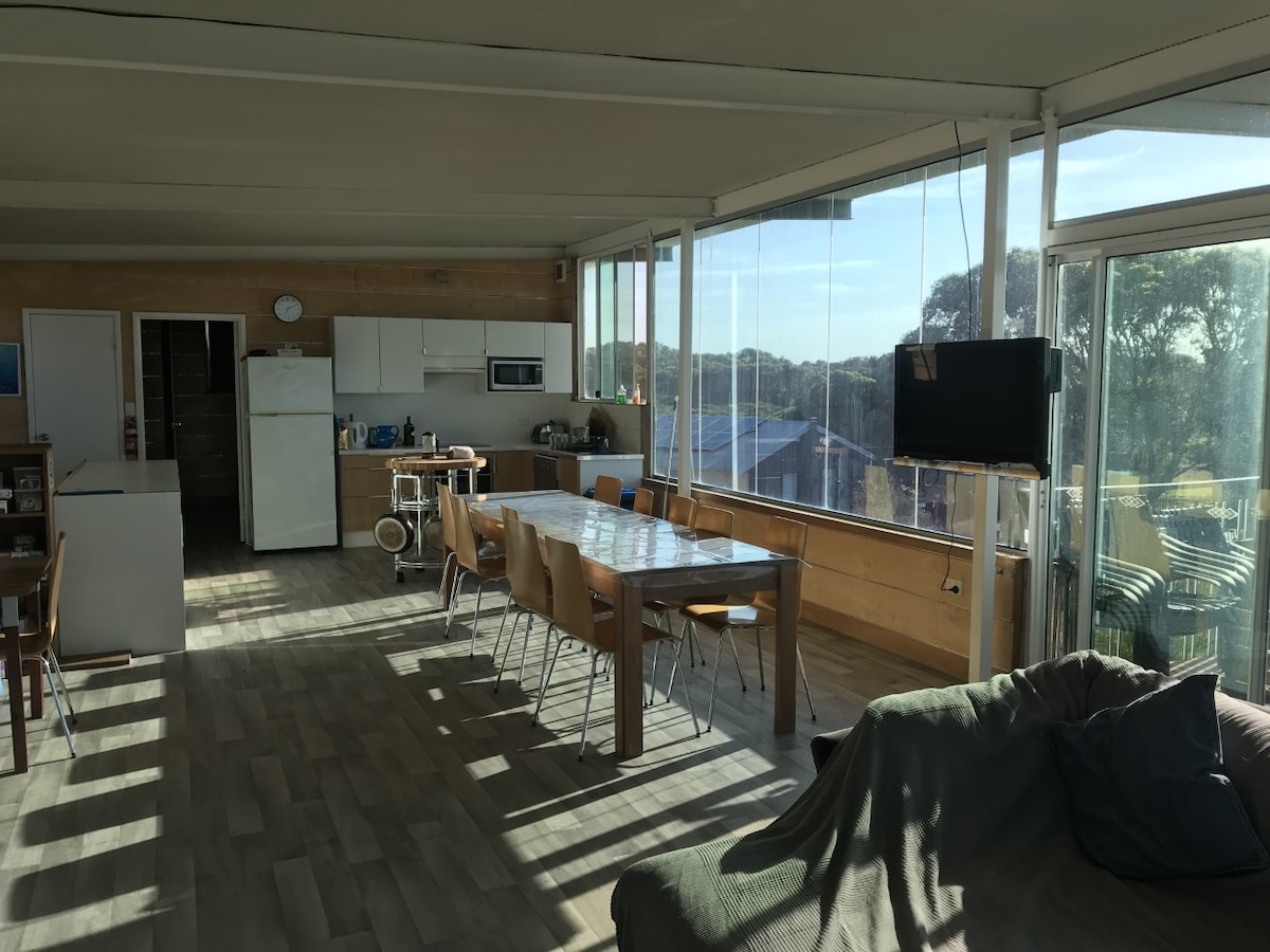 Lig do scíth agus bí i dteagmháil leis an dúlra ag an Teach Crainn - i dteach trá i stíl retro tá línéadach leapa agus cadhcanna dea - mhéine. Níl sé oiriúnach do pheataí ach siúlóid 100 méadar go dtí trá madraí Guilderton. Bain sult as deoch (tae & caife san áireamh) ar an deic mhór a shíneann ón tolglann timpeallaithe ag crainn eoclaipe. Lig do mhuintir na háite siamsaíocht a chur ar fáil duit Galahs, Finches srl - síol éan a sholáthraítear. @ Amoore_the_ Treehouse - Roinn d'íomhánna. Saoire ghearr shuaimhneach do gach séasúr - Sorn adhmaid cosúil - adhmad in aisce.