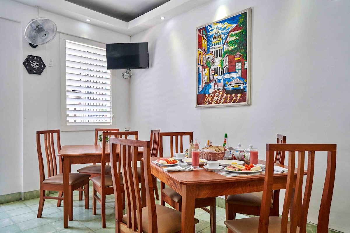 Brú le seomra príobháideach, seomra folctha príobháideach le triomadóir gruaige, aerchóiriú, teilifís, le 1 leaba dhúbailte ina bhfuil 2 aoi i lár Havana, bloc amháin ar shiúl agus dhá bhloc ón bpromanáid móinéir, céimeanna ó lár stairiúil Habana Vieja. Seirbhís fáiltithe leis an bhfoireann ar fáil 24 uair an chloig Tá balcóiní againn chun taitneamh a bhaint as luí na gréine Havana agus a gcultúir. WI - FI 24hr Sláintiúil, seirbhís bhricfeasta iomlán nó phearsantaithe do thaitneamh an chustaiméara.