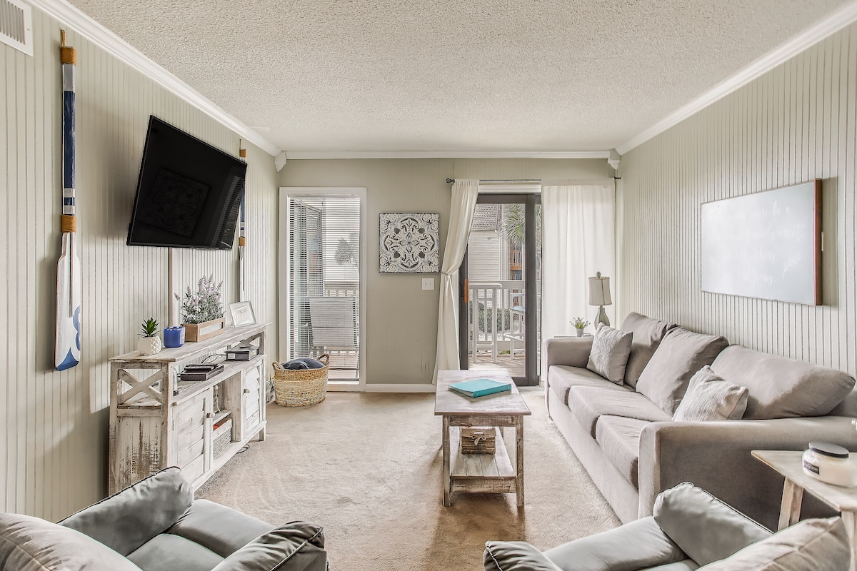 This beach escape is located in the highly desired Cherry Grove section of North Myrtle Beach. You will enjoy having 2 balconies - one on the front and one on the back! The complex is directly across the street from the ocean; it's an easy walk down to the beach. You will enjoy being in a quiet area removed from larger crowds while still minutes away from everything the Grand Strand has to offer.