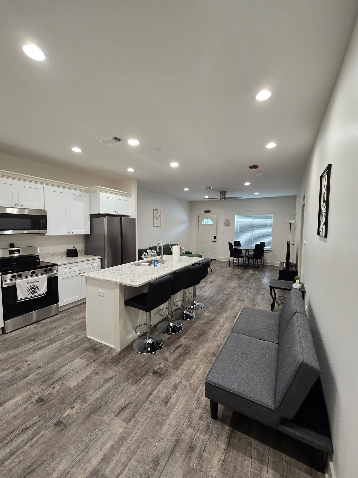 Bain sult as Olde Towne Oak Stay, eispéireas uathúil i gcroílár Downtown Slidell, atá suite achar gairid idir Ceathrú na Fraince in New Orleans agus Cósta Murascaille Mississippi. Tá bialanna agus siopadóireacht i gcéin ó bheith ag siúl. Freastal ar thearmainn, ar fháiltithe nó ar imeachtaí in ionaid eile sa cheantar. Níl Mardi Gras agus paráidí Lá Fhéile Pádraig ach bloc amháin ar shiúl. Tá ealaín Adam Sambola, cithfholcadáin mhóra siúil isteach, cistin fheistithe, stua, bord foosball, agus in ann 10 a chodladh sa réadmhaoin.