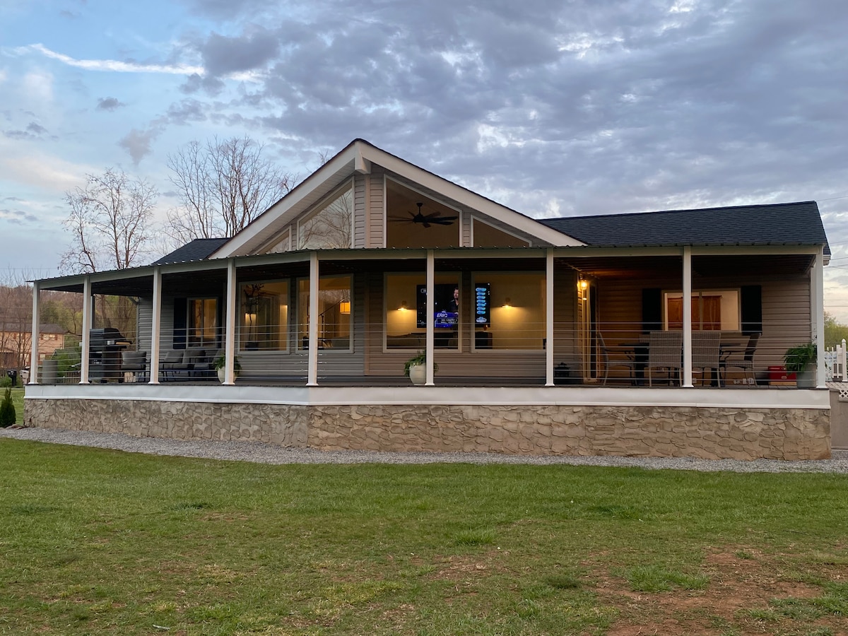 Neadaithe níos lú ná míle ó Abhainn Holston Theas, a bhfuil clú agus cáil uirthi mar gheall ar a hiascaireacht bhreac den scoth, agus gan ach cloch a chaitheamh amach ó Luasbhealach Mótair leictrithe Bhriostó. (Chomh maith leis sin níos lú ansin míle ar shiúl) Téigh ar ár ndeic ar an díon, Tabhair dúshlán do do chairde maidir le cluiche ping pong, cuir imní ort sa tobán te, nó bain sult as na leaganacha rómhór de Connect 4, Poll an Arbhair, Seiceálaithe, agus Jenga. Cleachtaigh do scileanna a chur ar ár nglas beag agus tú ar maos i radhairc lánléargais.