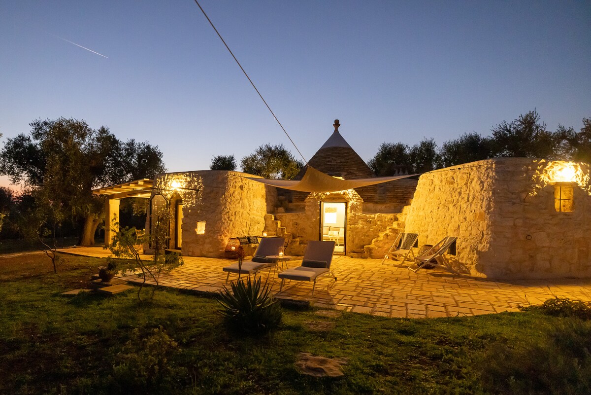 Tá a gheasa féin ag an spás uathúil seo, atá snoite laistigh de thruillí traidisiúnta, agus is féidir leat fíorspéir Ghleann Itria a bhlaiseadh ann. Téann tú isteach trí sheanpheargóla sútha talún-fíonchaor. Tá an chistin agus an seomra folctha suite sna cuasa, agus tá na háiteanna itheacháin agus codlata suite i dtrullo saracen agus i dtrullo ar chruth cóin arda. Ón bpaitió príobháideach agus ón linn snámha imeall éigríoch in aice láimhe tá radhairc ar ghleann agus ar spéirlíne Ceglie Messapica.