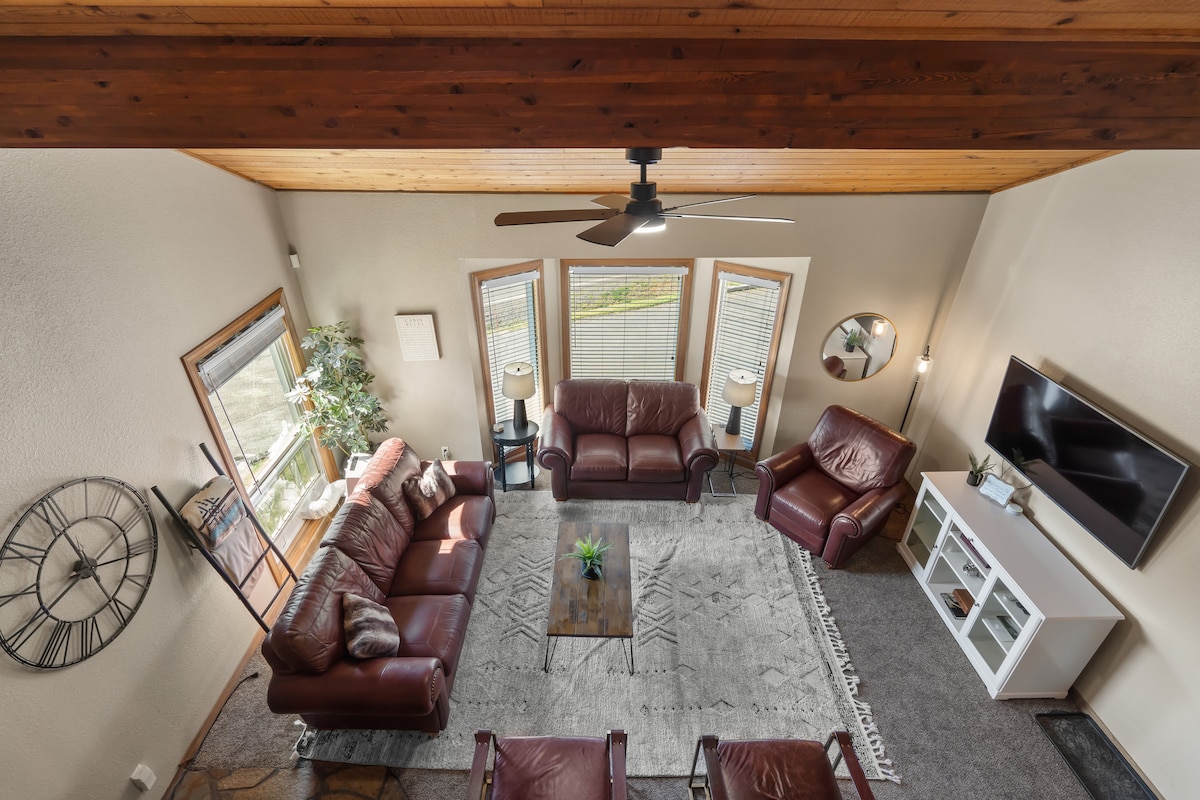 An ceann is mó rátáil ó 'Mór ag Aíonna' in McCall! Bain sult as draíocht bhaile bheag le compord nua-aimseartha cúpla nóiméad ó Loch Payette, Brundage Mountain, agus Ponderosa Park. Tá dhá sciathán seomra leapa príobháideacha le folcadáin iomlána, cistin lán, spásanna suaimhneacha maireachtála, agus Teilifís Chliste ann, rud a fhágann go bhfuil an tearmann seo foirfe do theaghlaigh nó do chairde. Tá páirceáil saor in aisce do bháid agus do leantóirí ar fáil ar an gcabhsa fada. Suíomh foirfe in aice le cúrsa gailf, cosáin agus tránna locha—tosaíonn d'eachtra McCall anseo, le compord a fhágann go bhfilleann aíonna bliain i ndiaidh bliana.
