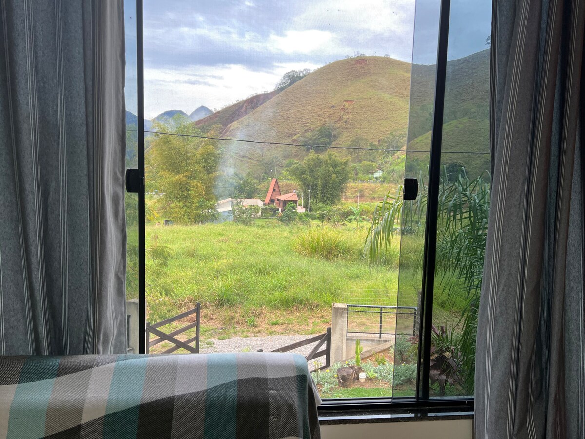 Fáilte go @nossocanto_serrarj. Bain sult as draíocht an chale seo, eisiach le fuaim na habhann, i ngach gné, le teallach laistigh agus lasmuigh, linn snámha, beárbaiciú, Wi - Fi, teilifís chliste, éadaí leapa, meaisín níocháin agus triomadóra agus fiú spéir réaltach do thráthnóna an spéir níos glaine.