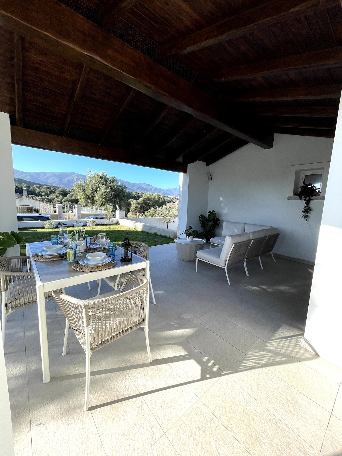 Lig do scíth leis an teaghlach nó le cairde ar fad ag an Villa síochánta 4 Sheomra Leapa seo sa chuid álainn den tSairdín. Tá 4 sheomra leapa en - suite sa teach uathúil, fairsing seo. 3 Sheomra le leapacha ar mhéid rí agus 1 Seomra le Leaba Dhúbailte. Oscail cistin agus áit tolglainne ina bhfuil áit dóiteáin. Thar féachaint ar an bhfarraige. Tá an chistin lánfheistithe. Tá gríoscán beárbaiciú lasmuigh, gairdín mór, linn snámha agus guairneán (nach bhfuil téite). Tiomáint 5 nóiméad chuig an trá is gaire.