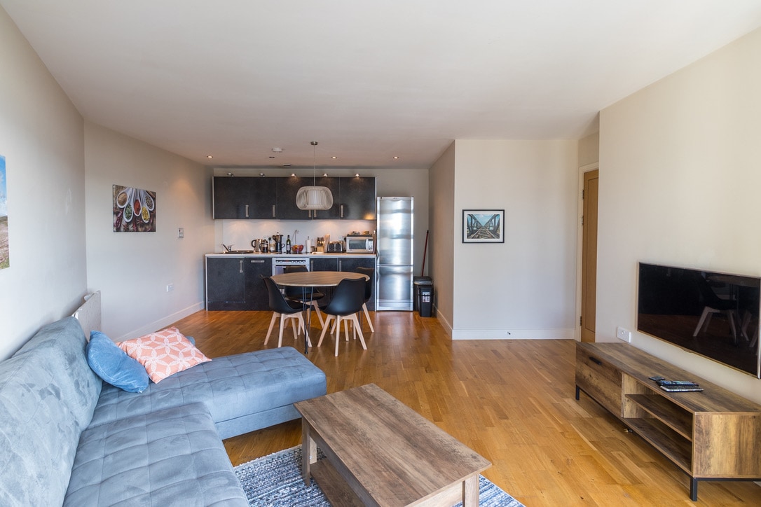 Tá dhá sheomra leapa dhúbailte fairsinge san árasán nua - aimseartha seo atá athchóirithe as an nua. Tá dearadh glan comhaimseartha ar fáil sa seomra folctha nua gleoite, foirfe le haghaidh athnuachan tar éis lá ag iniúchadh Caerdydd. Tá tolglann agus cistin mhór plean oscailte ann, atá feistithe go hiomlán do d'fhanacht. Bain sult as na seónna is fearr leat ar an Teilifís Chliste, agus fan ceangailte le Wi - Fi ar fud an árasáin. Caith cloch amach ó lár na cathrach agus suite i gceann de cheantair eisiacha Caerdydd.