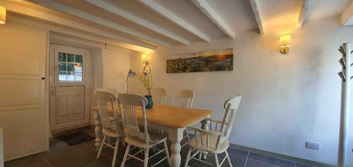 I gcroílár Shráidbhaile Castleton, Hope Valley, sa Peak District. Ideal le haghaidh cnocadóireacht, rothaíocht nó díreach ag fuarú sa ghairdín nó os comhair na tine fíor. 5 nóiméad ó thithe tábhairne agus bialanna iontacha, is breá leat mo theachín compordach le bíomaí darach, fíor - thine, leaba chompordach rí, teilifís chliste, netflix, páirceáil agus Wi - Fi saor in aisce. San áireamh tá bunghnéithe na cistine, tae, bainne caife agus builín úrbhácáilte le him agus subh ar theacht dóibh.