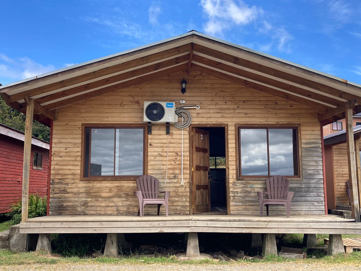 Cábán álainn i lár na tuaithe Chiloé. Tá an cábán suite go sonrach in Teguel Bajo, pobal beag 4.5 km ó bhaile Dalcahue. Is áit í i lár na tuaithe, timpeallaithe ag foraoisí dúchasacha, cúpla méadar ó Bhogach Teguel agus le radharc álainn ar Chanáil Dalcahue. Ar an gcéad urlár tá go leor spáis ina bhfuil an chistin, an seomra suí, an seomra bia agus an feadán te. Sa mezzanine tá an príomhsheomra ina bhfuil leaba 2 sheomra.