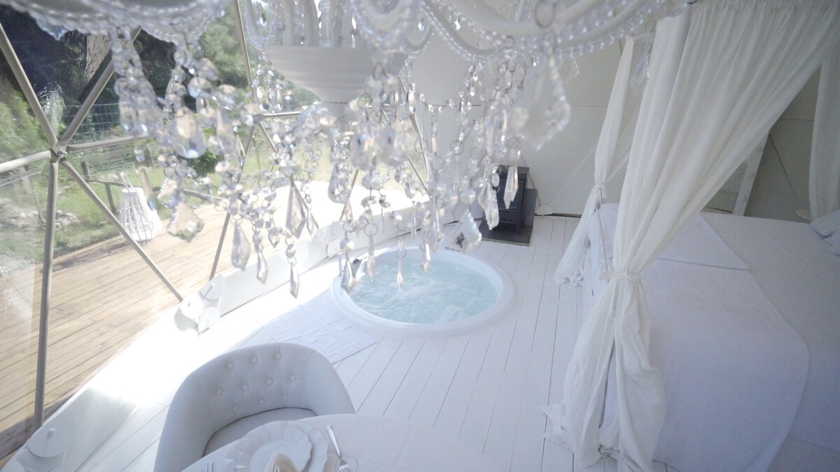 Daoine fásta amháin, Gan Wi - Fi, Gan pheataí. Príobháideacht uasta. SVUÍT CHRUINNEACHÁIN 50M2 GEODESICO AR ARDÁN 100M2 AR PHLOTA PRÍOBHÁIDEACH, DE CHRAINN OLÓIGE, OSCAILTE don DÚLRA, LE CITHFHOLCADÁN LASMUIGH. LEABA SHEACHTRACH BHAILÍNEACH, PUFFS SEACHTRACHA CHUN LUÍ NA GRÉINE, FOLCADÁN HIDREAMASSAGE, TOLG TANTRACH A FHEICEÁIL. DINNÉAR BAILE AGUS BRICFEASTA FLÚIRSEACH MAITH SAN ÁIREAMH. SEICEÁIL ISTEACH DHIGITEACH AGUS AN PHRÍOBHÁIDEACHT IS MÓ.