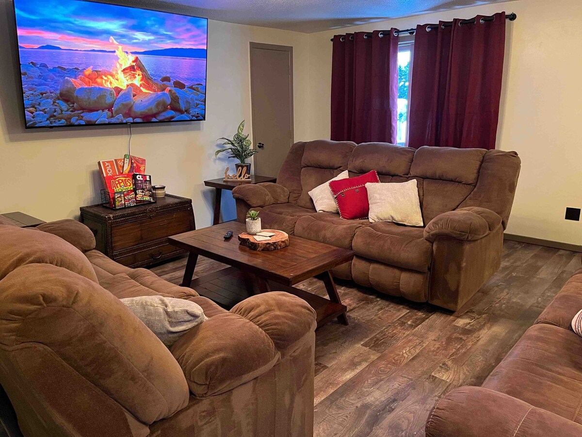 Tá an teach álainn seo, a ndearnadh athchóiriú air le déanaí amach sa tír síos bóthar marbh, ach níl sé ach cúpla míle ó bhaile Ladysmith fós. Tá sé thart ar mhíle ó pháirc bheag chontae ar Taiscumar Dairyland, gan ach cúpla míle ón ngalfchúrsa áitiúil, agus díreach síos an bóthar ó chroitheadh ar an gcosán sneachta sa gheimhreadh. Tá bád ag tuirlingt ag an bpáirc don samhradh agus rochtain ar iascaireacht oighir sa gheimhreadh. Tá súil againn 5*s a thuilleamh agus táimid ag tnúth le tú a óstáil! Ceadúnas Stáit # VJAS-BCCLDB