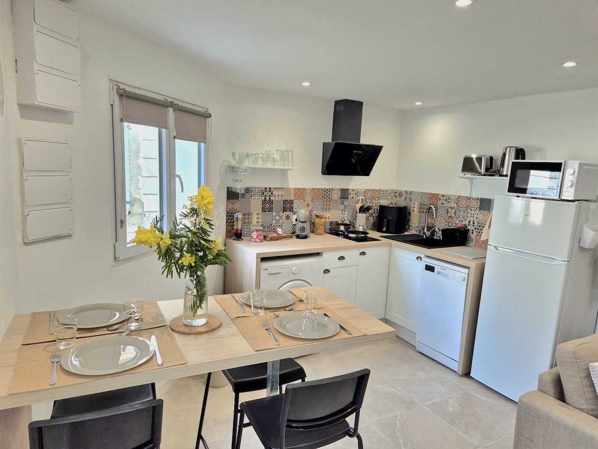 Fáilte go teach Mathilde agus Arnaud "i gcroílár thír na gCathar" in Verzeille! Díreach 15 nóiméad ó chathair mheánaoiseach Carcassonne agus Limoux, i gceantar cónaithe atá timpeallaithe ag crainn olóige agus fíniúnacha, cuirimid fáilte romhat ó cheann ceann na bliana. Tá compord agus suaimhneas araon sa chúcán 42 m² seo, atá foirfe do lánúin nó do thuras gnó. Tá scíth, dúlra agus fionnachtana ag fanacht leat i réigiún barántúil atá saibhir ó thaobh cultúir, blasanna agus tírdhreacha de.