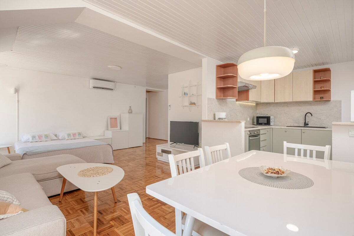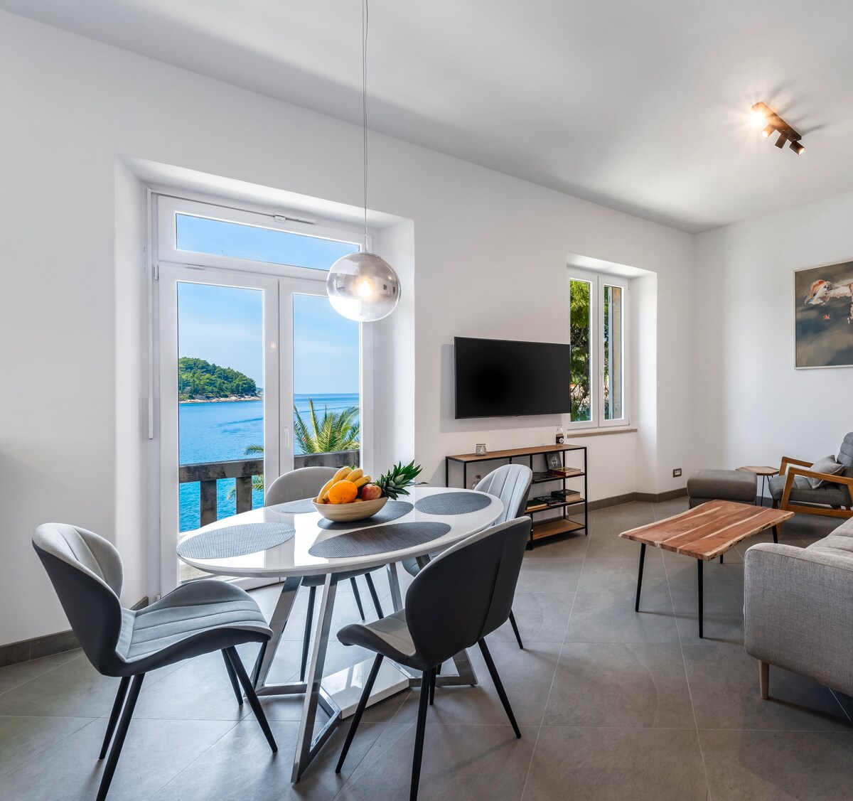 Tá sé ar fad san árasán penthouse eisiach seo: dearadh nua - aimseartha agus radhairc farraige dazzling. Tá an t - árasán suite ar an gcnoc díreach os cionn an tseanchuid de Cavtat a thairgeann radharc iontach ar an bhfarraige Aidriadach agus ar an Seanbhaile Dubrovnik, suaimhneas iontach agus an áisiúlacht a bhaineann le bheith laistigh d'achar siúlóide éasca. Tá an t - árasán an - fhairsing le breis agus 100sqm de lóistín maireachtála, le 3 sheomra leapa agus 2 sheomra folctha agus tá sé deartha chun freastal ar chóisir suas le 6 aoi.
