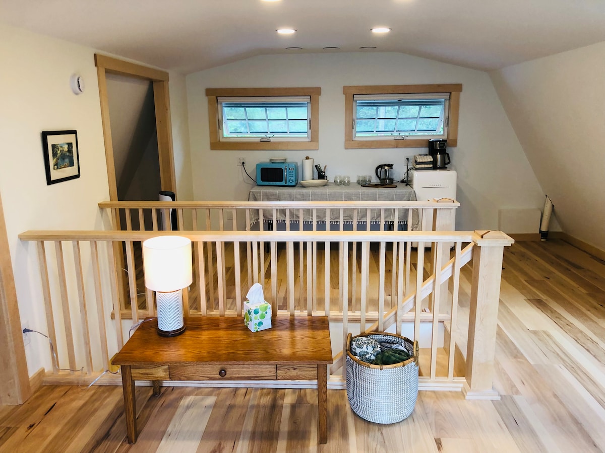 Coinnigh simplí é san áit shuaimhneach seo atá suite go lárnach. Lonnaithe ar Chonair Fíona Cayuga, agus Cosán Fíona Seneca 8 míle ar shiúl. Taisteal síos cabhsa fada gairbhéal chuig teachín nua - aimseartha atá i bhfolach sna crainn. Bain sult as tinte campála síochánta, lig do scíth sa tobán te, féach ar Netflix nó Disney móide ar ár teilifís chliste, nó tabhair leat na roic ghorm/dvds is fearr leat chun féachaint ort. Tá plean álainn urláir oscailte sa teachín le cistin lánfheistithe do do riachtanais chócaireachta go léir agus beár caife lán - stocáilte.